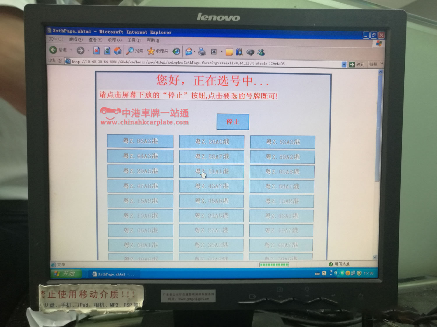 港珠澳大橋中港牌選號第四步:號碼池中的號碼隨機展示中,按「停止」即可鎖定你的50個號碼,好緊張喔!