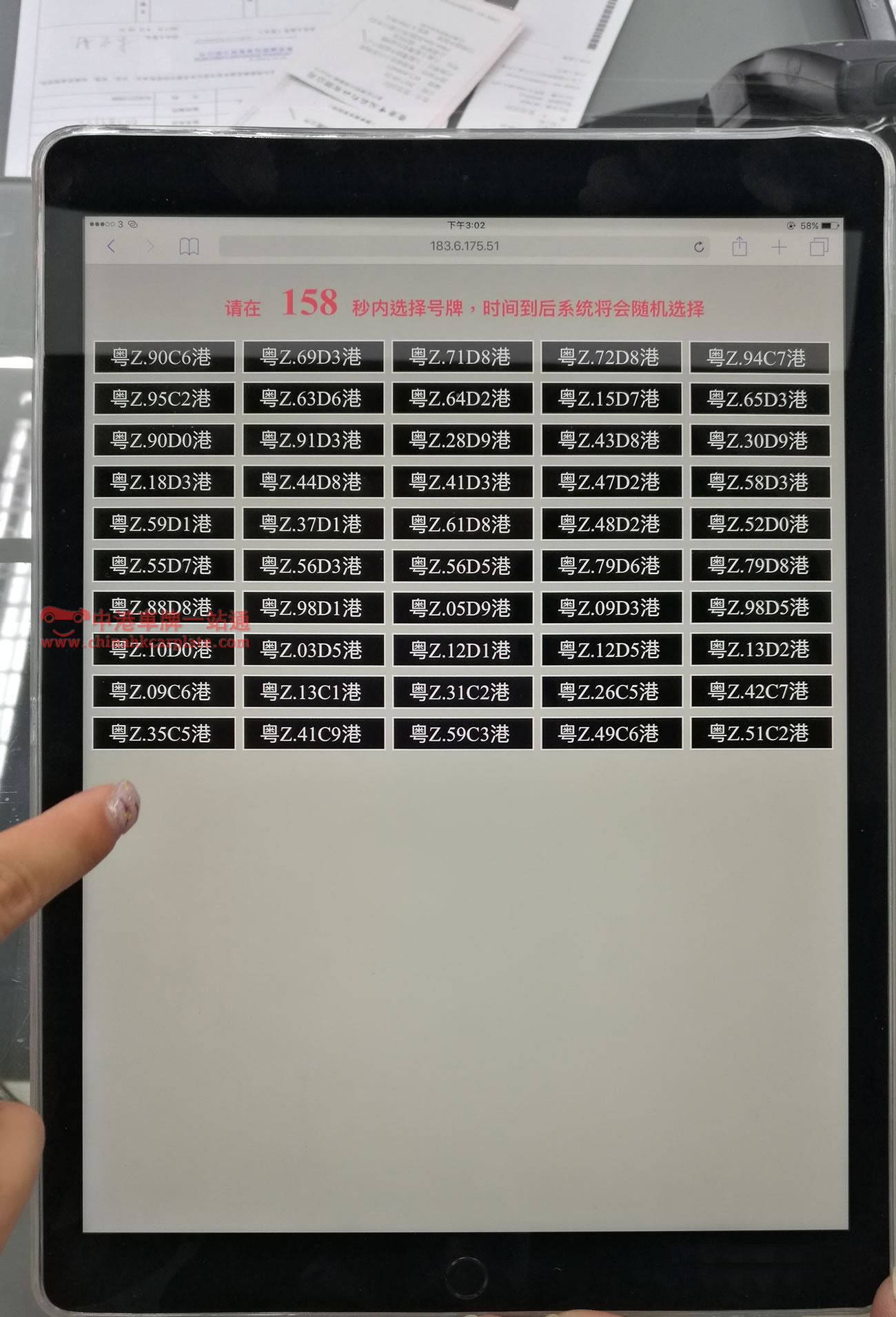 同樣出現50個號碼供申請者在3分鐘內選擇,港中旅的選號系統還加入了模擬真實的牌照外觀讓申請者欣喜,讚!重點來了:留意第1列第7個號碼,888靚號就匿藏於此:)